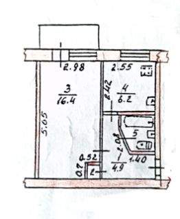 Бывшая 2 комнатная квартира, официально переведена в НЕЖИЛОЙ ФОНД.