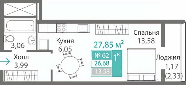 Продаётся 1-комнатная квартира в строящемся доме (ЭТАП 2, СЕКЦИИ Б1, Б2, Б3, Б4), срок сдачи: III-кв. 2028, общей площадью 28.33 кв.м., на 1 этаже. Новый жилой комплекс "Семейный квартал ПРОПОЛИС" от застройщика "Монолит" расположен по адресу: Республика Крым, Симферопольский район, с. Мирное, ул. Учительская