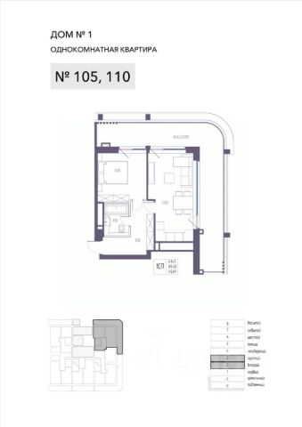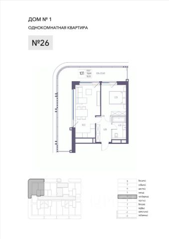 Однокомнатная квартира в жилом комплексе Комфорт-класса "Бакунинский". Площадью 54,45 кв. м.