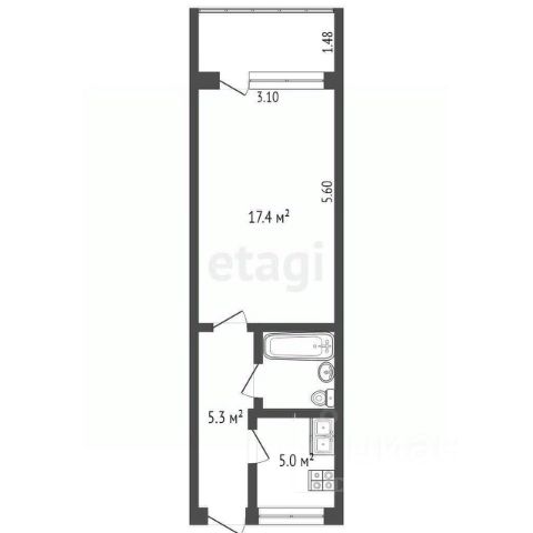 Кухня 6,9 м2, санузел 3 м2, комната 16,8 м2, прихожая 8,6 м2, балкон 0,9 м2, лоджия 1,3 м2.