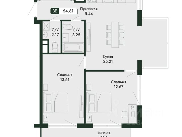 • ✅ Минимальная площадь: 34,1 м²