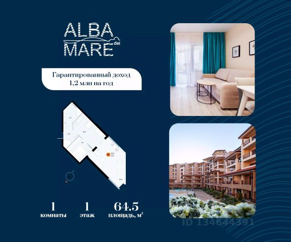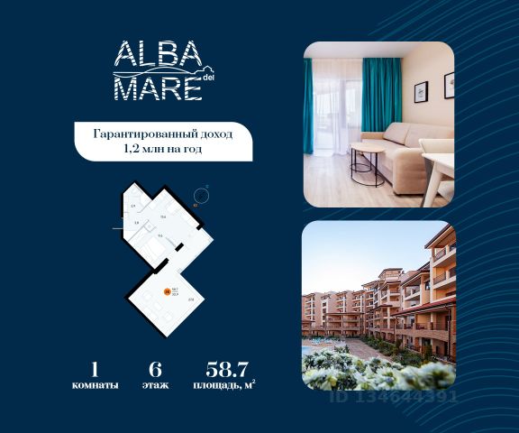 Продаются апартаменты в построенном комплексе. Срок сдачи 4 квартал 2024 года. Альба Дель Маре это комплекс апартаментов бизнес-класса с развитой инфраструктурой. Уютные здания переменной этажности строятся в 5 минутах ходьбы (385 метров) от одного из лучших пляжей Евпатории "Супер Аква Бич". Широкая береговая линия, места для активного отдыха и зоны релакса позволят насладиться отдыхом на любой вкус. Архитектурное решение комплекса создает истинное ощущение Средиземноморья и присутствия на дорогом курорте: скатные черепичные крыши, козырьки и навесы-перголы, арочные завершения проемов, цветовая палитра отделки и фасадов, где используются оттенки желтого, охры, терракоты и бежевого. Переменная этажность здания формирует камерность проекта, создавая прекрасные видовые характеристики для каждого апартамента. Просторные террасы с видом на море, патио с собственным выходом к бассейну на первых этажах комплекса, детская и спортивная площадки, ландшафтный дизайн здесь все создано для роскошного отдыха и расслабления. Территория комплекса апартаментов закрыта и находится под круглосуточным видеонаблюдением, что позволит резидентам и гостям чувствовать безопасность проживания. Концепция комплекса: комфорт проживания с первых дней заселения. Реализация апартаментов осуществляется с полной отделкой под ключ. Собственники апартаментов имеют возможность поручить управление недвижимостью профессиональному оператору, что позволит получать стабильный доход. Автономная газовая котельная позволит не зависеть от внешних отключений отопления., парковочные места на закрытой территории комплекса обеспечат безопасность вашему автомобилю, система центрального кондиционирования создаст комфортную температуру в каждом номере. Жилой комплекс реализуется в соответствии с 214 ФЗ.