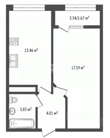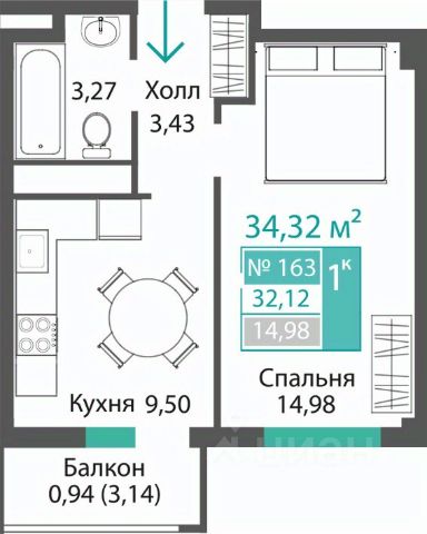 Общая площадь: 18.03 кв.м.