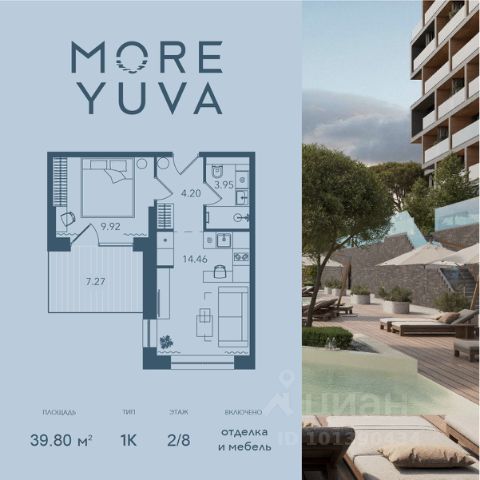 Видовая однокомнатная квартира (евро-2) ЖК Южный ветер в Гурзуфе, общей площадью 35 кв.м., в том числе балкон с панорамным остеклением, расположена на 7-ом этаже, 9-ти этажного жилого дома, из квартиры открываются красивейшие виды на море, горы и виноградники, дом сдан, новый жилой комплекс комфорт-класса расположен в экологически чистом, уединённом и спальном районе большой Ялты посёлок Гурзуф, с предчистовой отделкой и автономным отоплением.