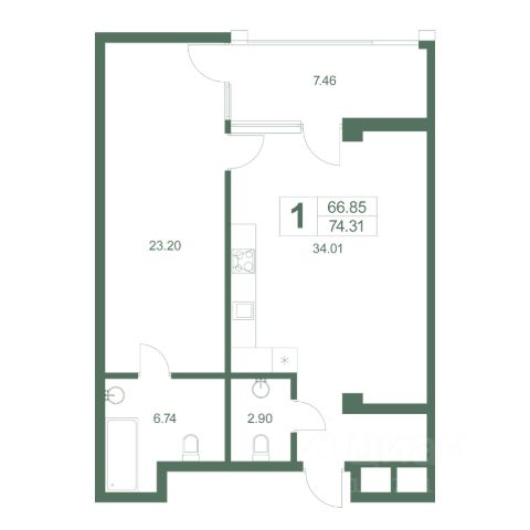 Апартаменты на четвертом этаже с видом на зелень, площадью 75,3 м2 - стоимость 22 590 000 рублей.