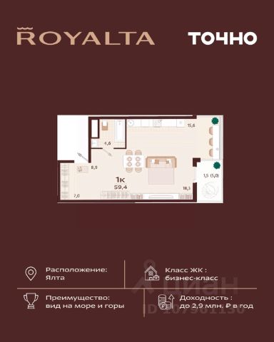 В продаже квартира 43,96 м2 в эко-квартале Партенит Парк! Партенит Парк уникальный семейный эко-квартал на Южном берегу Крыма для счастливой и здоровой жизни Вашей семьи. - Дома расположены в окружении гор, лесов и виноградников. - Кристально чистый воздух, наполненный ароматами моря и крымских сосен - В 10 мин парк санатория "Айвазовское" - Панорамные виды на море и знаменитый Аю-Даг - Тематические детские площадки и зоны для занятий йогой - Трансфер до моря и собственный пляж Природное окружение отлично дополняет собственная инфраструктура квартала. - Торговый центр с супермаркетом прямо на территории квартала - Коммерческие помещения на 1х этажах - Кладовые в каждом доме для хранения сезонных и редко используемых вещей - Система придомовых паркингов забудьте о проблемах с парковкой! 214-ФЗ и эскроу-счета гарантия безопасной сделки Возможность дистанционного заключения Подходит под льготные ипотечные программы Рассрочка 0% до конца строительства Продам 1-комнатную квартиру с кухней гостиной в Ялте.