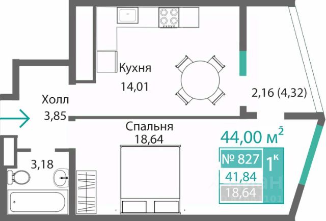 В продаже 1-к квартира без комиссии для покупателя!