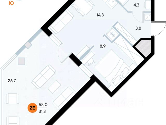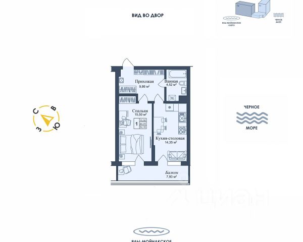 * Жилая зона 15,11 м²: Вместительная, светлая, без внутренней отделки. Большие окна наполняют квартиру солнечным светом и свежим морским бризом! .