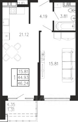 • ✅ Минимальная площадь: 18,2 м²