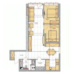 Общая площадь квартиры 18 м2, раздельный санузел, вмонтировано полноценное спальное место на втором уровне, а также есть придомовая территория 10 м2, на которой можно организовать зону отдыха или свой любимый уголок для растений.
