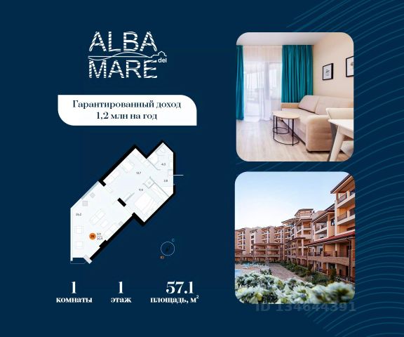 Продаются апартаменты в построенном комплексе. Срок сдачи 4 квартал 2024 года. Альба Дель Маре это комплекс апартаментов бизнес-класса с развитой инфраструктурой. Уютные здания переменной этажности строятся в 5 минутах ходьбы (385 метров) от одного из лучших пляжей Евпатории "Супер Аква Бич". Широкая береговая линия, места для активного отдыха и зоны релакса позволят насладиться отдыхом на любой вкус. Архитектурное решение комплекса создает истинное ощущение Средиземноморья и присутствия на дорогом курорте: скатные черепичные крыши, козырьки и навесы-перголы, арочные завершения проемов, цветовая палитра отделки и фасадов, где используются оттенки желтого, охры, терракоты и бежевого. Переменная этажность здания формирует камерность проекта, создавая прекрасные видовые характеристики для каждого апартамента. Просторные террасы с видом на море, патио с собственным выходом к бассейну на первых этажах комплекса, детская и спортивная площадки, ландшафтный дизайн здесь все создано для роскошного отдыха и расслабления. Территория комплекса апартаментов закрыта и находится под круглосуточным видеонаблюдением, что позволит резидентам и гостям чувствовать безопасность проживания. Концепция комплекса: комфорт проживания с первых дней заселения. Реализация апартаментов осуществляется с полной отделкой под ключ. Собственники апартаментов имеют возможность поручить управление недвижимостью профессиональному оператору, что позволит получать стабильный доход. Автономная газовая котельная позволит не зависеть от внешних отключений отопления., парковочные места на закрытой территории комплекса обеспечат безопасность вашему автомобилю, система центрального кондиционирования создаст комфортную температуру в каждом номере. Жилой комплекс реализуется в соответствии с 214 ФЗ. Продается 1-комнатная квартира на 1 этаже в республике Крым.