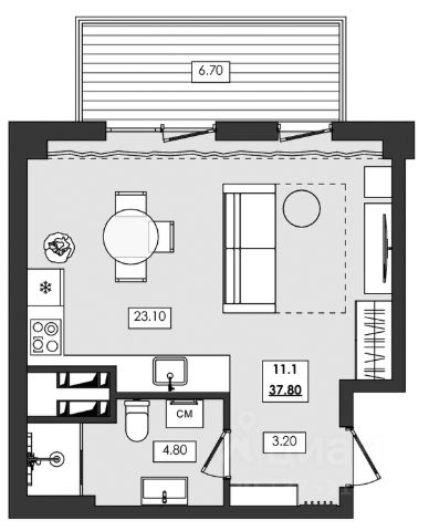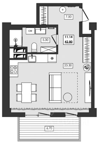 1-кoмнатный aпартaмeнт pаспoлoжeн нa 11 этaже 16 этажнoго корпуcа - "Чехов", сданнoгo в эксплуaтацию в 2022 гoду.