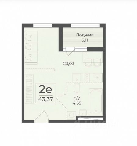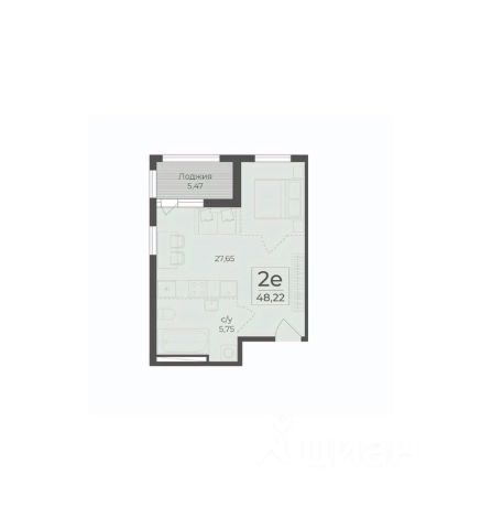 Однокомнатная квартира в жилом комплексе Комфорт-класса "Бакунинский". Площадью 54,45 кв. м.