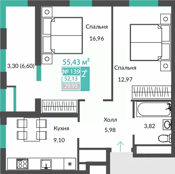 • ✓ В базе Циан 2 1-комнатных квартир на 13 этаже в сельском поселении Перовское Симферопольского района