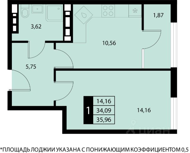 Продаётся 1-комнатная квартира в строящемся доме (Корпус 4), срок сдачи: III-кв. 2026, общей площадью 35.96 кв.м., на 14 этаже. Жилой комплекс "Партенит Парк" в поселке городского типа Партенит городского округа Алушта в республике Крым.