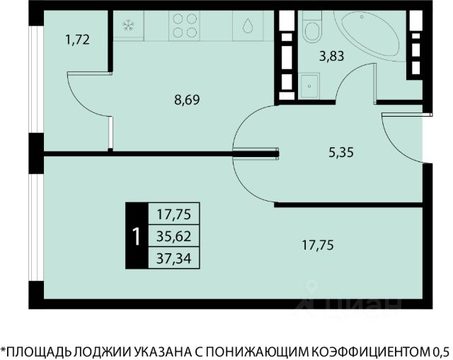 Продаётся уютная однокомнатная квартира в жилом комплексе Комфорт-класса "Бакунинский" площадью 63,5 кв. м.