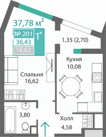 Арт. 119845549 Предлагаем к продаже уютную, в современном стиле 1-комнатную квартиру