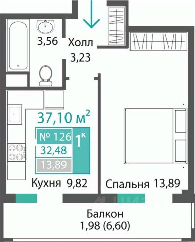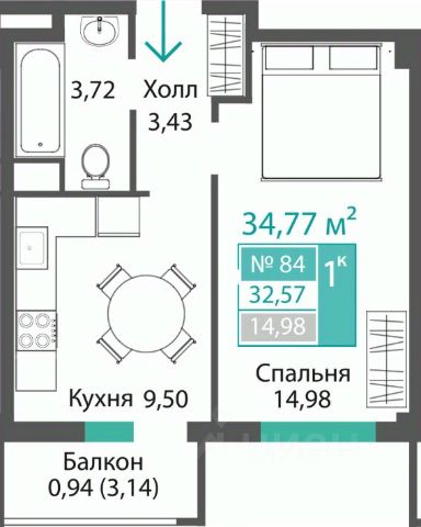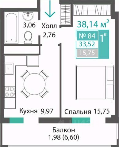 Общая площадь: 18.03 кв.м.