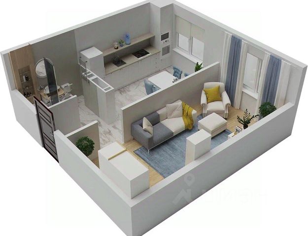 Отделка чистовая. Окна металлопластик, потолки и стены ошпаклеваны, пол - цементно-песчаная стяжка, введены все коммуникации (газ, вода, свет, канализация), установлены все приборы учета, отопление водяное, установлены радиаторы, автономное газовое отопление, металлопластиков трубы, вентиляция, металлическая входная дверь.В квартире одна большая комната, просторная кухня, лоджия и французский балкон. Санузел совмещённый. Для удобства жильцов есть поземная парковка.