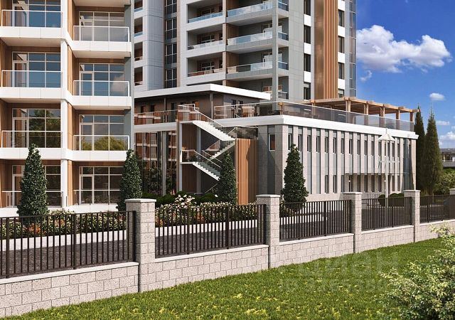 Апарт-комплекс состоит из четырех зданий высотой от 9 до 12 этажей.