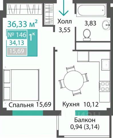 1 комнатная квартира площадью 48,3 м2 расположена в новом современном жилом комплексе комфорт-класса - ЖК Приоритет.