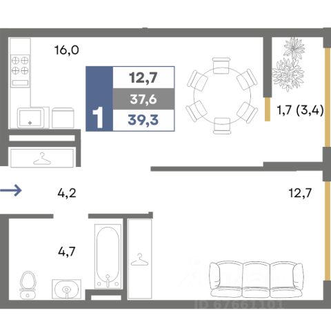 1 комнатная квартира площадью 48,3 м2 расположена в новом современном жилом комплексе комфорт-класса - ЖК Приоритет.
