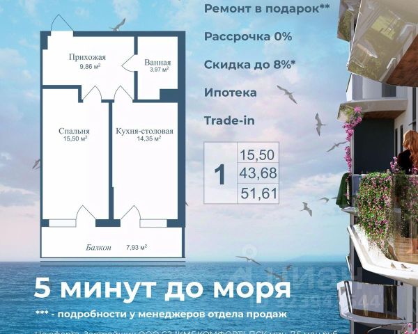 Продаются апартаменты в построенном комплексе. Срок сдачи 4 квартал 2024 года. Альба Дель Маре это комплекс апартаментов бизнес-класса с развитой инфраструктурой. Уютные здания переменной этажности строятся в 5 минутах ходьбы (385 метров) от одного из лучших пляжей Евпатории "Супер Аква Бич". Широкая береговая линия, места для активного отдыха и зоны релакса позволят насладиться отдыхом на любой вкус. Архитектурное решение комплекса создает истинное ощущение Средиземноморья и присутствия на дорогом курорте: скатные черепичные крыши, козырьки и навесы-перголы, арочные завершения проемов, цветовая палитра отделки и фасадов, где используются оттенки желтого, охры, терракоты и бежевого. Переменная этажность здания формирует камерность проекта, создавая прекрасные видовые характеристики для каждого апартамента. Просторные террасы с видом на море, патио с собственным выходом к бассейну на первых этажах комплекса, детская и спортивная площадки, ландшафтный дизайн здесь все создано для роскошного отдыха и расслабления. Территория комплекса апартаментов закрыта и находится под круглосуточным видеонаблюдением, что позволит резидентам и гостям чувствовать безопасность проживания. Концепция комплекса: комфорт проживания с первых дней заселения. Реализация апартаментов осуществляется с полной отделкой под ключ. Собственники апартаментов имеют возможность поручить управление недвижимостью профессиональному оператору, что позволит получать стабильный доход. Автономная газовая котельная позволит не зависеть от внешних отключений отопления., парковочные места на закрытой территории комплекса обеспечат безопасность вашему автомобилю, система центрального кондиционирования создаст комфортную температуру в каждом номере. Жилой комплекс реализуется в соответствии с 214 ФЗ.