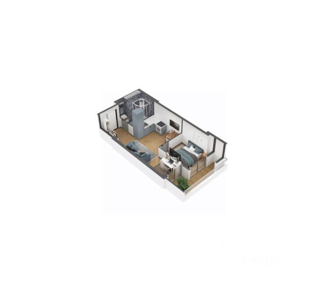 этаж - 7-й, комната - 12,4 м², кухня - 7,3 м², прихожая - 4,9 м², санузел - 3,3 м², балкон - 3,0 м², встроенный шкаф - 1,3 м², общая площадь - 30,2 м², высота помещений - 2,6 м, тамбур на 3 квартиры - около 9 м².