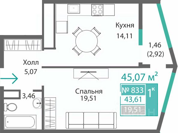 ПРОДАЖА УЮТНОЙ 1-КОМНАТНОЙ ЖК "ТЮЛЬПАНЫ"