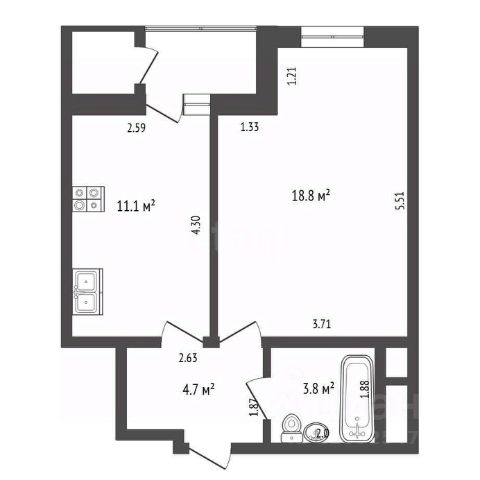 Общая площадь квартиры 35,85 кв.м.