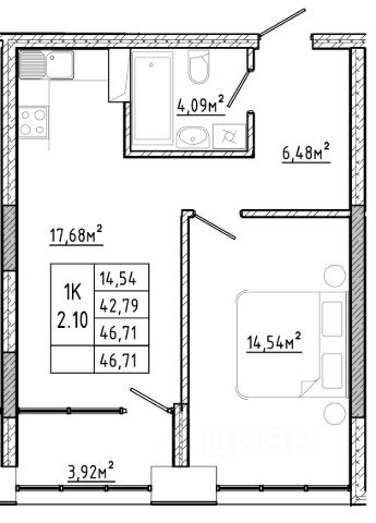 1-комн. квартира с предчистовой отделкой в ЖМ "Город Мира" на 10 этаже. Общая площадь: 49.9 кв.м., жилая: 14.7 кв.м., площадь просторной кухни-столовой: 20.3 кв.м. Угловая квартира, окна oбecпeчивaют paвнoмepнoe ocвeщeниe в тeчeниe дня. В квартире один балкон, один совмещенный санузел. Высота потолков 2.7 м.
