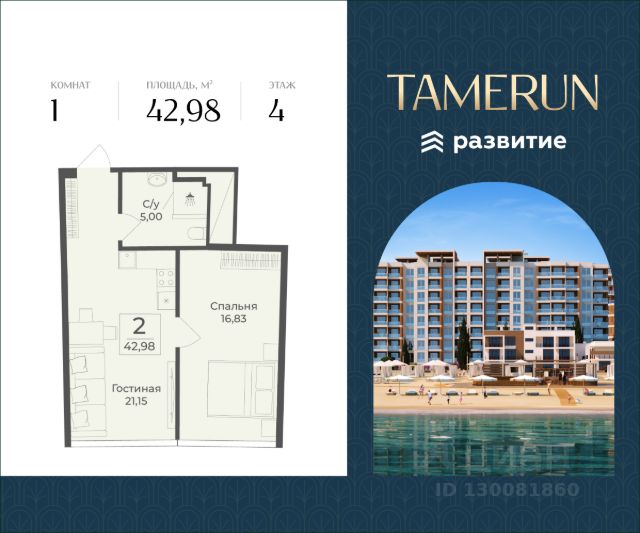 На первой береговой линии Черного моря продается апартамент площадью 36.43 кв. м без отделки. Апартамент находится в апарт-комплексе премиум-класса Tamerun Grand Mirmax 5*, между городами Евпатория и Саки от федерального застройщика ГК "Развитие". Tamerun - дом у моря для тех, кто мечтает о тишине, окружении парков и воды. На приватной территории с собственным пляжем расположены видовые апартаменты, бассейны, спа, рестораны и эстетичные сады. Персонализированный сервис здесь исполняет пожелания, создавая атмосферу пятизвездочного отеля у вас дома. Резиденция сочетает преимущества мягкого климата, близость к городам Саки и Евпатория и доступ к целебным источникам. Это пространство вдали от туристического шума идеально для круглогодичного комфортного проживания и здорового образа жизни. Расположение Пешком: - 3 минуты до приватного пляжа у Черного моря; - 15 минут до Ж/Д станции "Техникум"; - 25 минут до пирса у озера Сасык-Сиваш; На автомобиле: - 5 мин. до Симферопольского шоссе; - 10 мин. до города Саки; - 20 мин. до Евпатории; - 45 мин. до аэропорта имени И. К. Айвазовского; - 60 мин. до Ж/Д вокзала Симферополя. Инфраструктура для детей и взрослых - Эксклюзивный клубный пляж; - Виндсерфинг, дайвинг, катание на лодках и другие виды водного спорта; - Спортивный корт для тенниса, футбола и волейбола; - Приватная парковая территория; - Оздоровительный спа-комплекс; - 2 открытых и 1 закрытый бассейны с морской водой; - Банный комплекс с купелями, хамамом, снежной и соляной комнатами; - Развлекательный центр; - Детский клуб с кинотеатром; - Батуты, лабиринты и скалодромы для подростков; - Конференц-зал на 50 человек и переговорные кабинеты; - Бильярдный клуб; - Фитнес-центр с новейшими тренажерами; - Торговая галерея прямо в доме; - Летнее кафе, 3 ресторана и супермаркет; - Гранд-лобби в главном корпусе; - Просторные входные группы с колясочными и велосипедными; - Подземный паркинг на 188 машино-мест с автомойкой; - Наземная гостевая парковка на 259 машино-мест; - Видеонаблюдение, охрана, вход только по пропускам. Живописный ландшафт - Всесезонный сад: зеленый и цветущий двор круглый год; - Более 100 растений в приватном саду; - Амфитеатр на свежем морском воздухе; - Лаунж-зоны и прогулочные дорожки; - Крупнейшее в Крыму соленое розовое озеро Сасык-Сиваш и Сасыкский заказник; - Песчаные пляжи протяженностью 150 метров; - Главная мечеть Евпатории Джума-Джами, Собор Николая Чудотворца, Комплекс Караимских кенас в непосредственной близости. Проект для инвестиций - Федеральный девелопер, входящий в ТОП-20 застройщиков России; - Профессиональный отельный оператор; - Консьерж-сервис 24/7: бронирование, аренда, клининг, доставка; - Для инвесторов - полное делегирование обслуживания апартаментов; - Пассивный доход от 1,5 млн руб. в год; - Потенциал роста стоимости - 35% в год; - Срок окупаемости при сдаче в аренду - 5-6 лет; - Востребованность весь год (на 70% в среднем заселен комплекс). 1-комнатной квартиры в ипотеку в Саки.