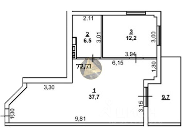 высота потолков 3.0 м.