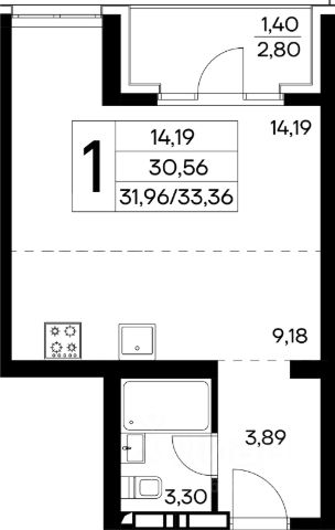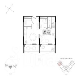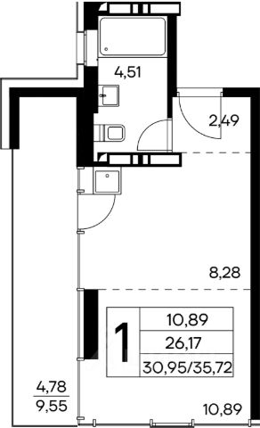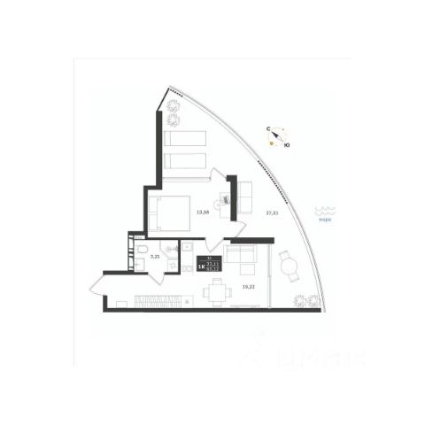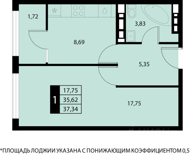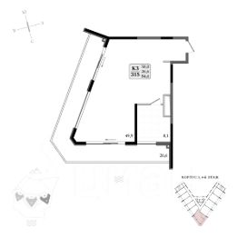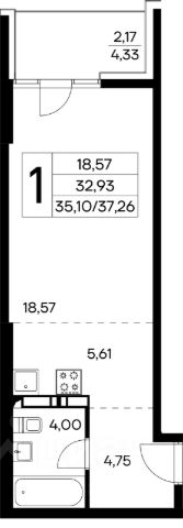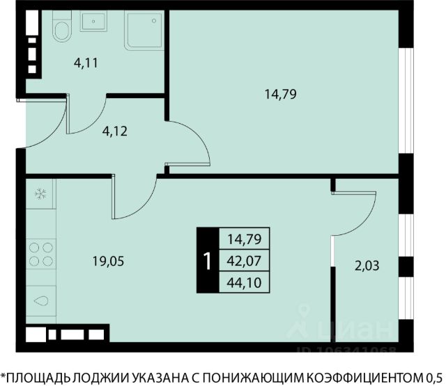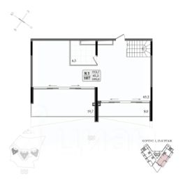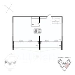 Общая площадь апартамента 43.5кв.м.