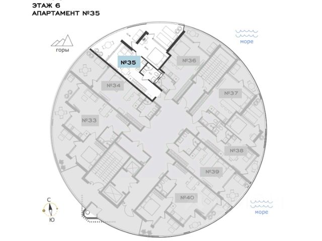 Просторная однокомнатная квартира с изолированной спальней, окна квартиры выходят на могущественные горы и вечнозелёный Ялтинский лес. Квартира видовая, расположена на 11 этаже жилого комплекса "Бакунинский".