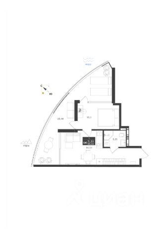 Однокомнатная квартира в жилом комплексе Комфорт-класса "Бакунинский". Площадью 54,45 кв. м.