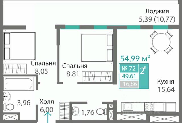 Продаётся 2-комнатная квартира в строящемся доме (Дом 3 (Секции Т3.3, К3КП2)), срок сдачи: I-кв. 2029, общей площадью 53.77 кв.м., на 2 этаже. Новый жилой комплекс "Благо" от застройщика "Монолит" расположен по адресу: Республика Крым, Симферопольский район, село Перово