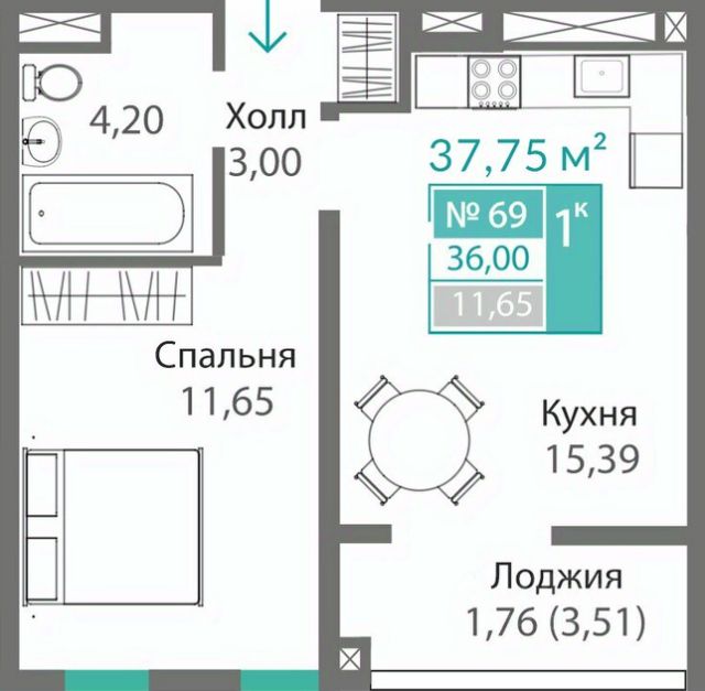 Продаётся 1-комнатная квартира в строящемся доме (Дом 3 (Секции Т3.3, К3КП2)), срок сдачи: I-кв. 2029, общей площадью 38.97 кв.м., на 6 этаже. Новый жилой комплекс "Благо" от застройщика "Монолит" расположен по адресу: Республика Крым, Симферопольский район, село Перово