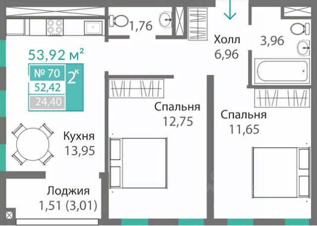 Продаётся 2-комнатная квартира в строящемся доме (Дом 3 (Секции Т3.3, К3КП2)), срок сдачи: I-кв. 2029, общей площадью 52.42 кв.м., на 9 этаже. Новый жилой комплекс "Благо" от застройщика "Монолит" расположен по адресу: Республика Крым, Симферопольский район, село Перово