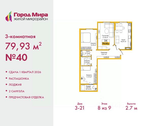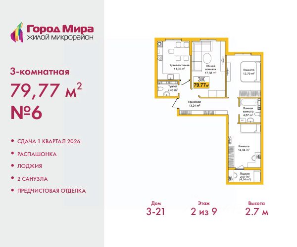 м; удобные двухкомнатные от 64,6 кв. м; просторные трёхкомнатные 87,7 кв. м.