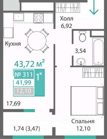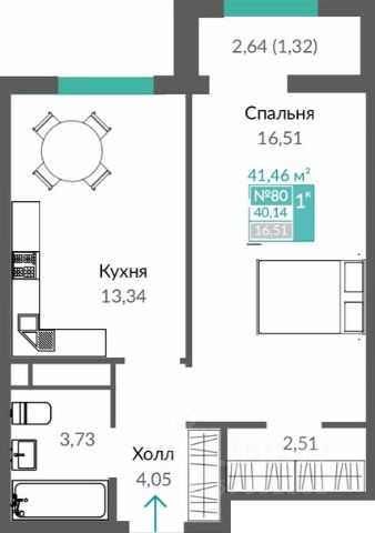 - Площадь 36.55 м2