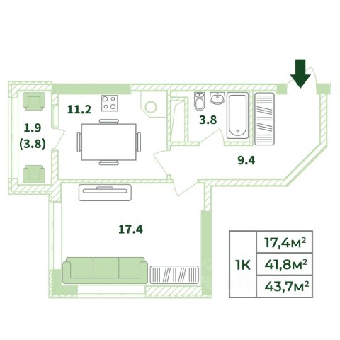 • ✅ Минимальная площадь: 37,9 м²
