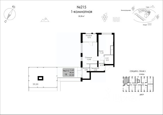 Продаются 1-комнатные апартаменты в строящемся доме (Строение 1), срок сдачи: IV-кв. 2025, общей площадью 35.16 кв.м., на 3 этаже. "Бирюзовая бухта" - трехсекционный восьмиэтажный апартаментный комплекс с развитой инфраструктурой, расположенный в экологически чистом районе города, в 15-ти минутах ходьбы до благоустроенной набережной и оборудованного, бесплатного песчаного пляжа. На территории комплекса и рядом с ним все, что нужно для комфортного проживания и отдыха - кафе, магазины, спортзал, зеленая территория, уютный двор. На крыше "Бирюзовой бухта" организовано дополнительное общественное пространство с шезлонгами, зонами отдыха с wi-fi, закрытыми от солнца столиками, лежаками. Здесь можно загорать, отдыхать, читать, наслаждаться морским бризом, любоваться рассветами и закатами. "Бирюзовая бухта" расположен в непосредственной близости от живописной набережной Судака, обрамленной деревьями, кустарниками и цветниками и идеально подходящей для променада и занятий спортом на открытом воздухе. Прогулка до песчаного пляжа займет максимум 15 минут. Причем идти придется не под палящим солнцем, а по кипарисовой аллее. Одна из "фишек" комплекса апартаментов - французское остекление. Преимущества такого остекления - максимальная естественная освещенность террасы и смежной с ним комнаты, визуальное расширение пространства. Такое остекление позволяет в полной мере насладиться прекрасными видами из окон комплекса. Мы позаботились о том, чтобы проживание в комплексе "Бирюзовая бухта" было комфортным и безопасным. Помимо закрытой территории, камер видеонаблюдения, в апартаментах будет работать ресепшн.