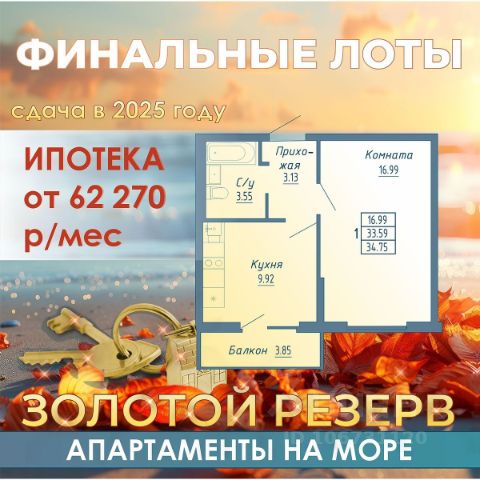 Продается квартира общей площадью 34,32 м2 в комплексе бизнес-класса "Долина Роз" в г. Судак. Квартира N 1/5-226 Видовые характеристики: горы Этаж: 5 Высота потолков: 3м. Варианты приобретения: — 100% оплата — Беспроцентная рассрочка — Ипотека от ведущих банков Преимущества комплекса: — Панорамные виды на побережье, горы и виноградники; — 10 минутах от природных и исторических достопримечательностей; Более 40 видов планировочных решений: — Нет квартир-студий; — Квартиры с собственным патио; — Квартиры с лоджией из кухни-гостиной или из спальни; — Пентхаусы с террасами; — Двухуровневые квартиры с террасами; — Квартиры с арочными окнами; — Квартиры с окном в ванной; — Квартиры с высотой потолка до 3.7м; — ФЗ-214. Инфраструктура: — Открытый бассейн с зонами отдыха и шезлонгами; — Собственная традиционно оборудованная баня; — Многофункциональная спортивная площадка и уличный workout; — Велосипедная дорожка по всему периметру жилого комплекса; — Детские площадки с безопасным покрытием; — Прогулочные аллеи с местами для отдыха; — Торговый центр; — Коммерческие помещения; — Келлеры для хранения вещей — Большая открытая парковка; — Закрытая охраняемая территория. SERVICE Аll inclusive от собственной сервисной компании: трансфер до комплекса, подготовка квартир к вашему приезду, аниматоры на детский праздник, клининг-сервис, экскурсии и трансфер по Крыму, прокат спортивного инвентаря и яхт. Предоставление услуг под любой из ваших запросов! Комплекс реализуется по 214-ФЗ. Для записи на просмотр звоните в отдел продаж!