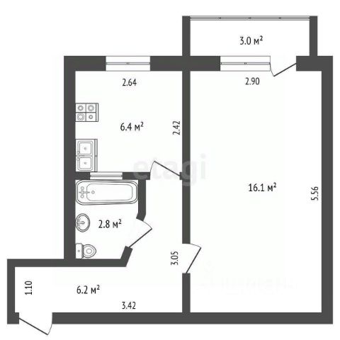 Продаётся однокомнатная квартира в районе Мойнаки, на улице Советской. Общая площадь составляет 29,5 кв. м., из которых комната занимает 17,3 кв.м., а кухня — 6,1 кв.м. Квартира находится на пятом этаже пятиэтажного дома.