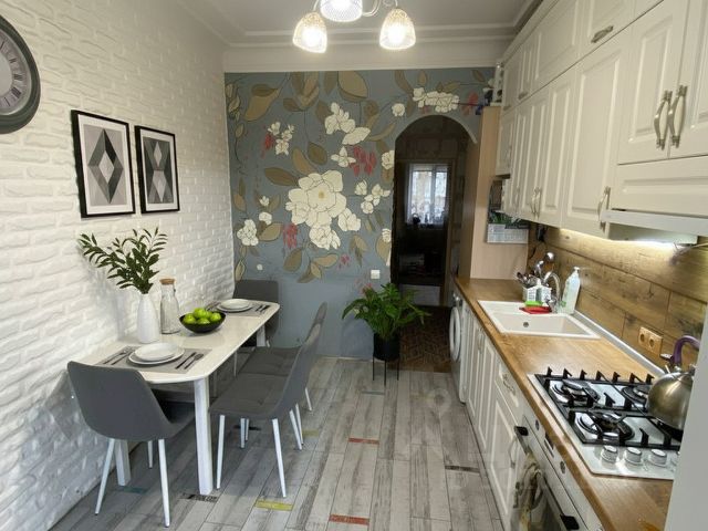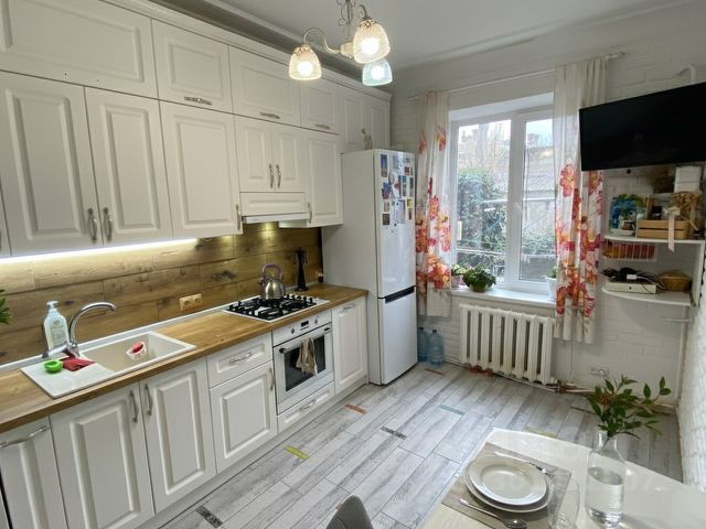 1-комн квартира с отдельным двориком в 500 м от моря на 1 этаже 2-этажного дома. Просторная жилая комната 20 кв.м. с высокими потолками. В санузле - душевая кабина, электро водонагреватель. Отопление центральное, а также за счет теплых полов, установленных в комнате, коридоре и санузле. Установлен кондиционер. На кухне площадью 11 кв.м. (!!!) много свободного места благодаря компактной установке встроенного оборудования. Качественный ремонт во всей квартире делался для себя. Главное преимущество квартиры - придомовая территория (закрытый огороженный дворик с мангальной зоной и полисадником под окном квартиры и капитальный гараж напротив квартиры). Удобное расположение квартиры позволяет выехать в любом направлении города минуя пробки. До центра города 7 минут пешком. 400м до набережной с кафе и пляжами. Продам 1-комнатную квартиру на улице Вересаева в городе Феодосия.