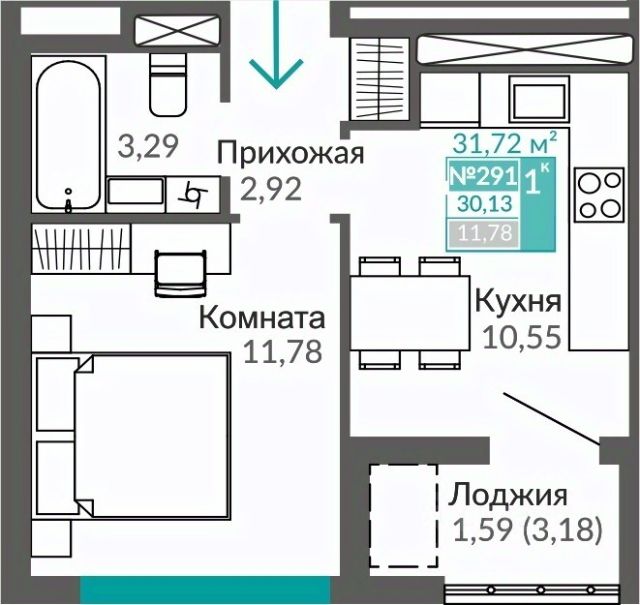 - Высокие потолки (2,85 м) добавляют пространству легкости и визуального комфорта.