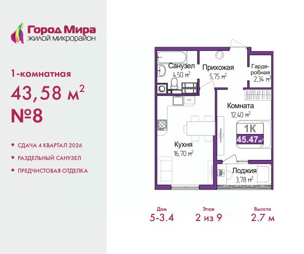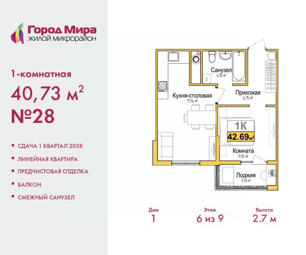 Продается 1-комн. квартира с предчистовой отделкой в ЖМ "Город Мира" на 8 этаже. Общая площадь: 38.6 кв.м., жилая: 10.7 кв.м., площадь просторной кухни-столовой: 12.8 кв.м. Все окна выходят на одну сторону. В квартире одна лоджия, один совмещенный санузел. Высота потолков 2.7 м. "Город Мира" это масштабный жилой комплекс, созданный для тех, кто ценит комфорт, безопасность и гармонию с природой. Здесь продумана каждая деталь от удобной инфраструктуры до эргономичных планировок квартир. "Город Мира" победил в номинации "Лучший экологический проект года в сфере строительства" по версии премии Сrimеа Urbаn Аwаrds. Способы приобретения недвижимости в "Городе Мира": 1. Ипотека: семейная от 5,5%, военная, IT-ипотека, базовая ипотечная программа и комбо-ипотека. Одобрение заявки проходит сразу в отделе продаж. 2. Материнский капитал на первый взнос. 3. Рассрочка от застройщика - до июня 2028 года! Первоначальный взнос от 30%. 4. Военная ипотека. Участники НИС могут приобрести квартиры по спец.цене. Ключевые преимущества комплекса: удачное расположение зеленый район с благоприятным микроклиматом продуманное зонирование жилые кварталы, зоны отдыха и коммерческие объекты комфорт-класс высокое качество строительства и современные инженерные решения Почему дом повышенной комфортности 2 в "Городе Мира" это лучшее решение? Образование и досуг: 2 детских сада (по 260 мест каждый) планируется строительство общеобразовательной школы детские и спортивные площадки в каждом дворе беседки для отдыха, зоны для выгула собак Ритейл и сервис: магазины, аптеки, медицинские центры фитнес-клубы, салоны красоты детские развивающие центры Парковки: гостевые парковки наземные и подземные паркинги Квартиры с продуманным комфортом: просторные планировки с кладовыми и колясочными лоджии с остеклением лапомойки для питомцев на первых этажах домов индивидуальное отопление выполнена стяжка пола и штукатурка стен консьерж-сервис для дополнительного удобства Благоустройство территории: ландшафтный дизайн с зонами отдыха современные детские площадки стильные холлы с дизайнерской отделкой система видеонаблюдения для безопасности "Город Мира" это место, где созданы все условия для комфортной жизни. Выбирайте качество и продуманность в каждой детали! Квартира находится во доме повышенной комфортности 2, 4-я очередь. Дом монолитно-каркасный, одноподъездный, высотой 16 этажей. В подъезде 1 пассажирский и 1 грузовой лифт. Окончание строительства - 2 квартал 2028 года. Оформление сделки по договору долевого участия. Квартира находится в корпусе 2. Дом монолитный, одноподъездный, высотой 16 этажей. На этаже 7 квартир. В подъезде 1 пассажирский и 1 грузовой лифт. Окончание строительства - 2 квартал 2028 года. Оформление сделки по договору долевого участия. Продам 1-комнатную квартиру на улице Батурина в городе Симферополь.