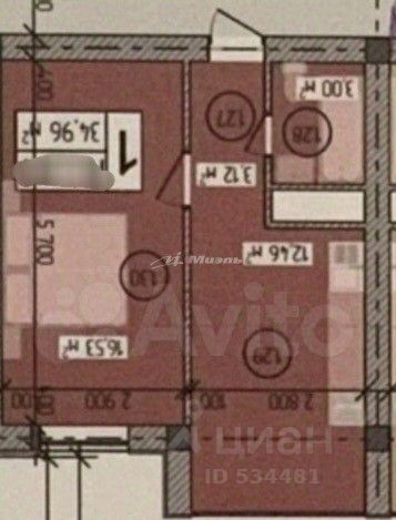 Общая площадь квартиры 12 равна 36,92 кв.м., планировка в объявлении.