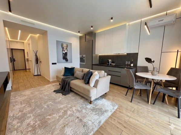 сдается с дизайнерским ремонтом (стеклопакеты с защитой от УФ, алюминиевый профиль, напольные радиаторы, переключатели, розетки, светильники, выход под кондиционер, межкомнатные двери, натяжные потолки, ванная под ключ, городские коммуникации, газовая котельная)